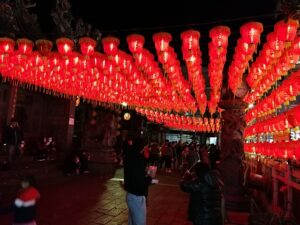 まずおすすめしたいのが「龍山寺(ロンシャンスー)」の夜の参拝体験。台北市内にあるこの古刹は、18世紀に建立された由緒ある寺院で、今も多くの地元民に親しまれています。